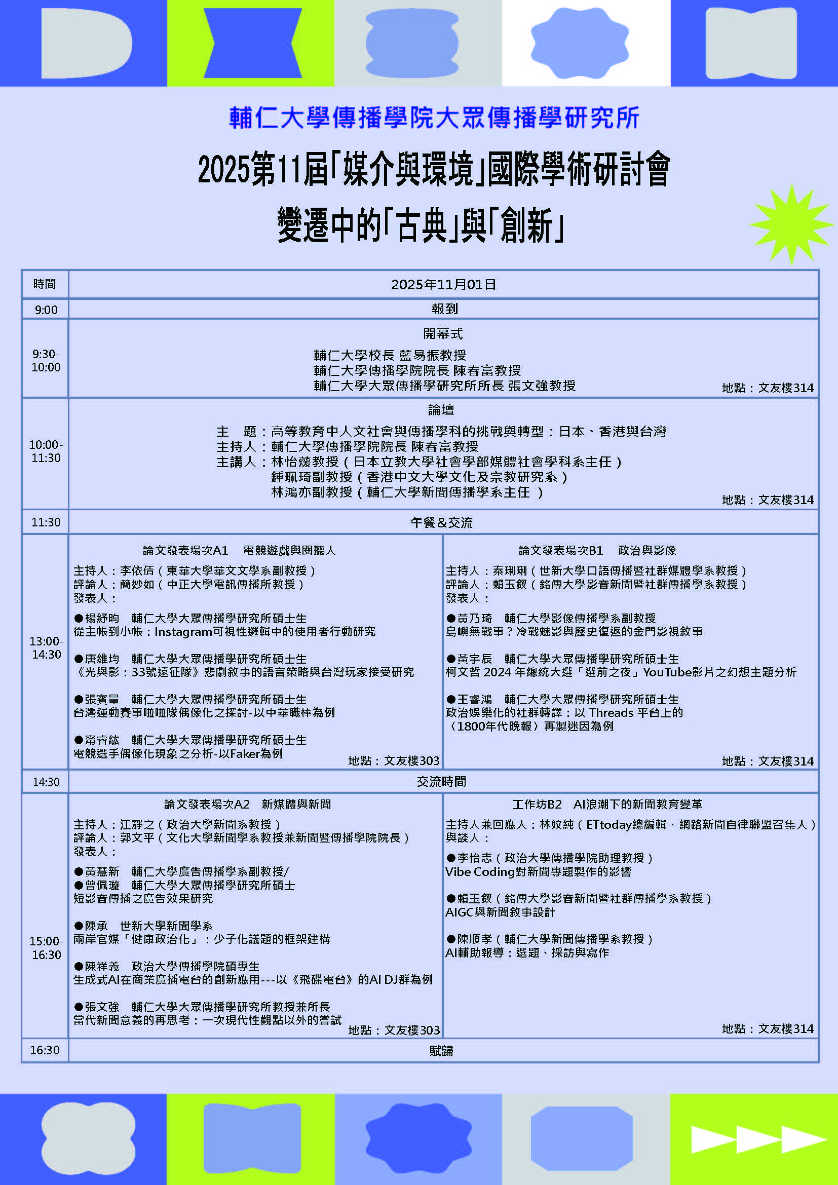 2025/10/15 17:26 [活動公告]2025第11屆「媒介與環境」國際學術研討會:《變遷中的「古典」與「創新」》報名中